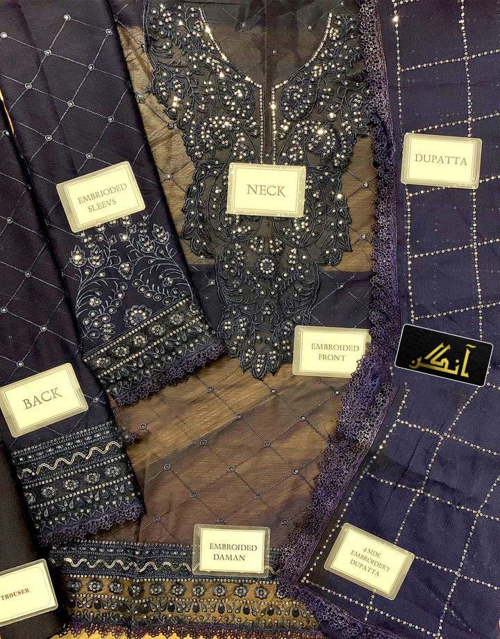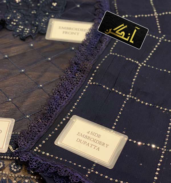 BRAND:ASIM JOFA chiffon embroidered sequence unstitced 3pc✓