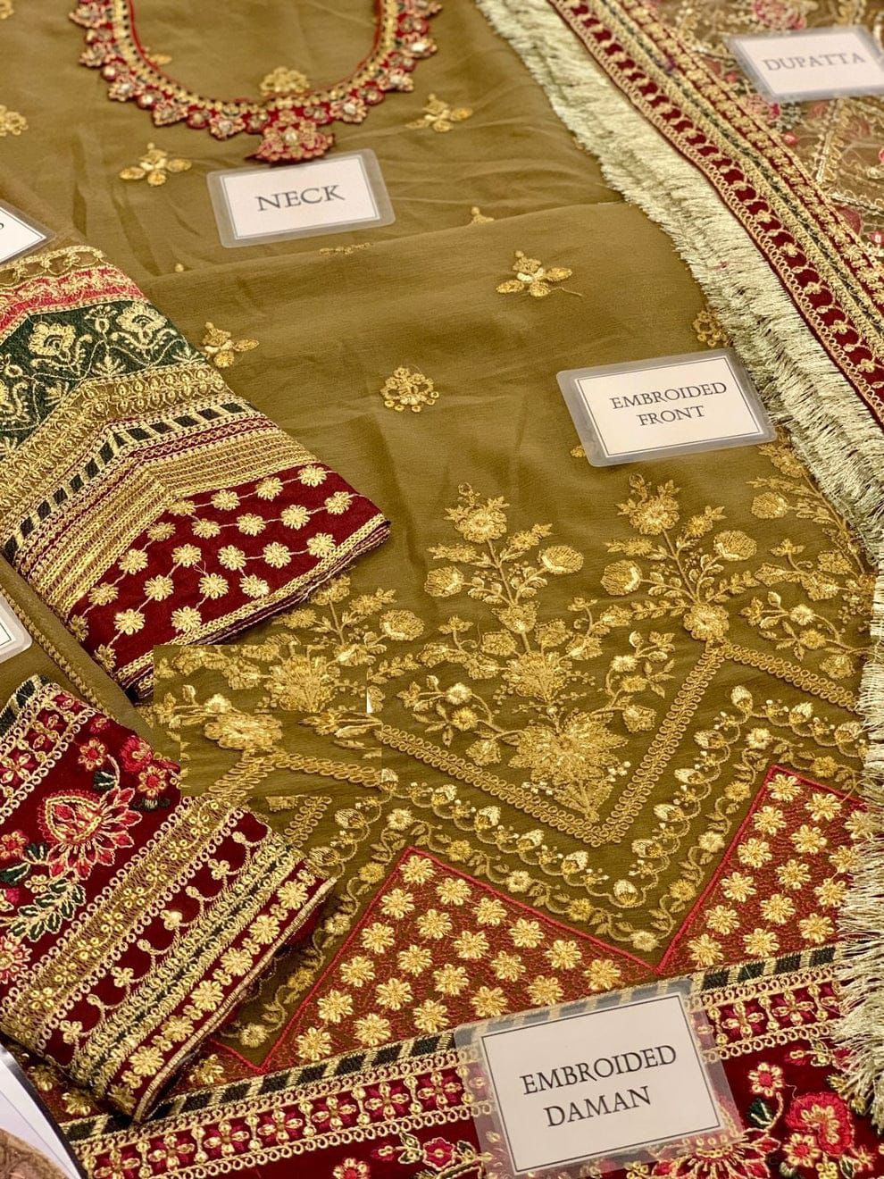 * sleeves: chiffon embroidered spengle work & embroidered boarders
