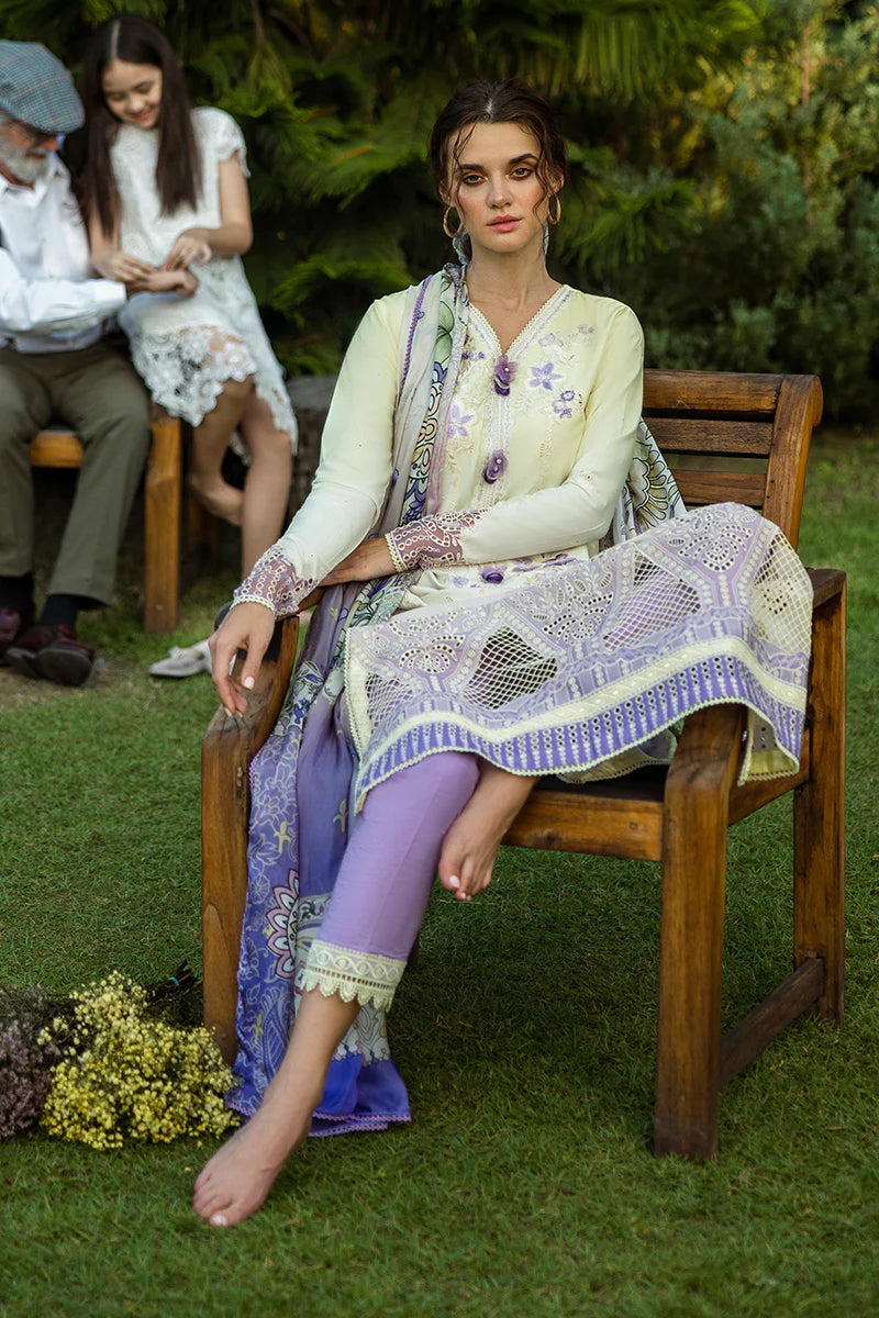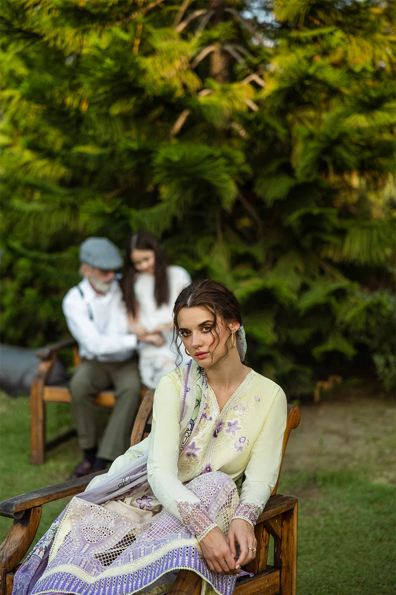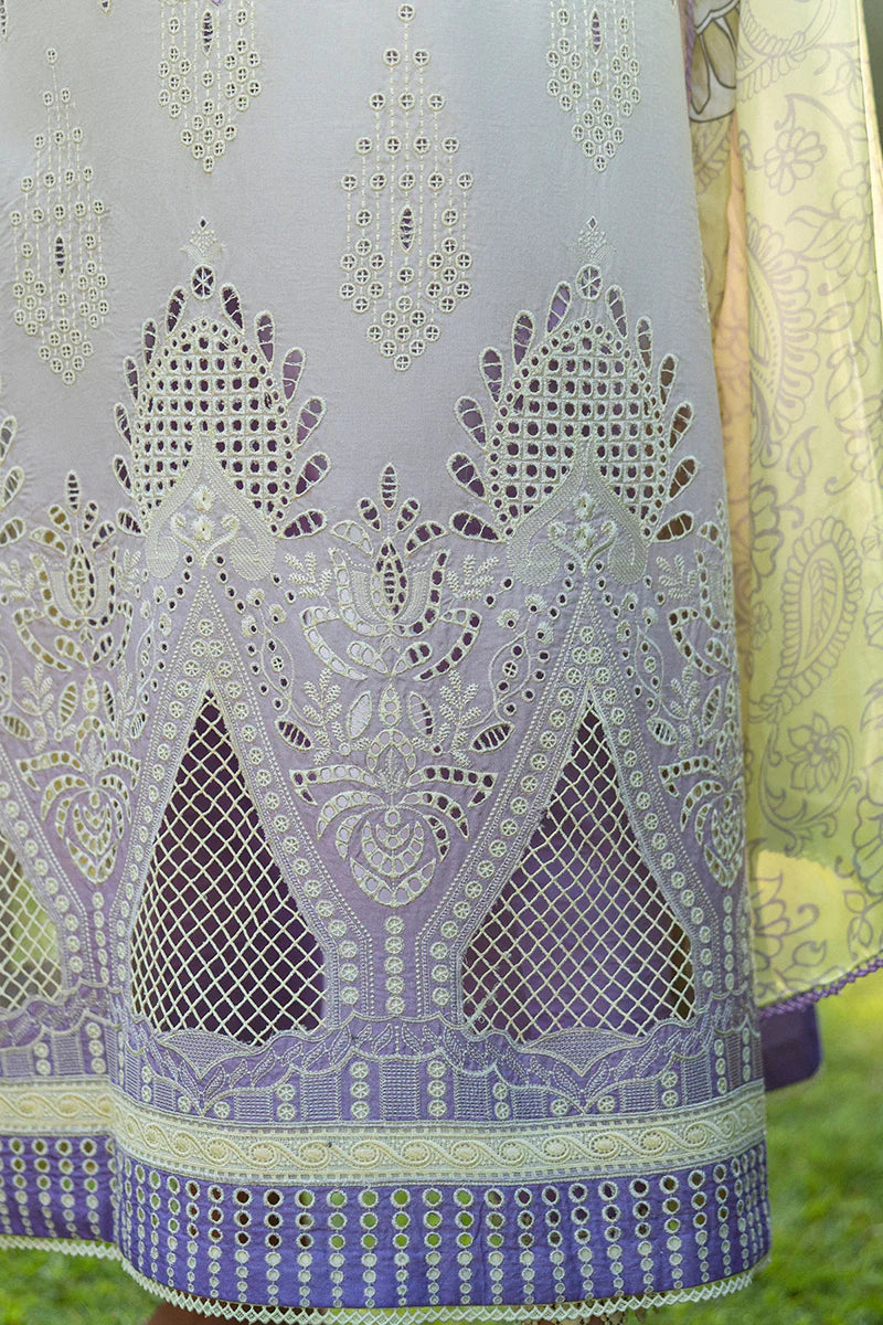 FABRIC: CHIKANKARI LAWNCOLOR: YELLOW INTO LAVENDER