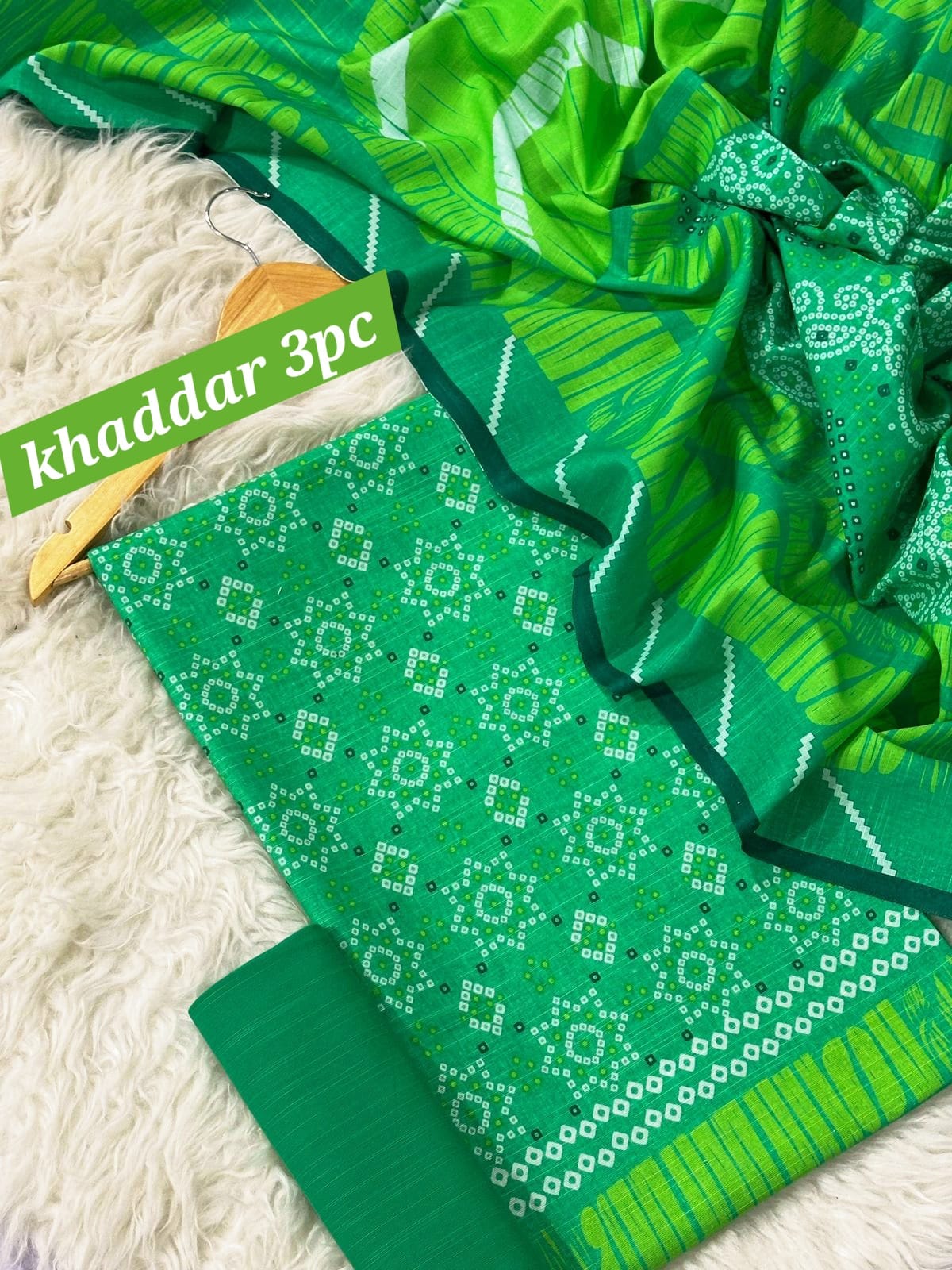 Fabric Detail 3pc Suit : Khaddar With Khaddar Print Shawl