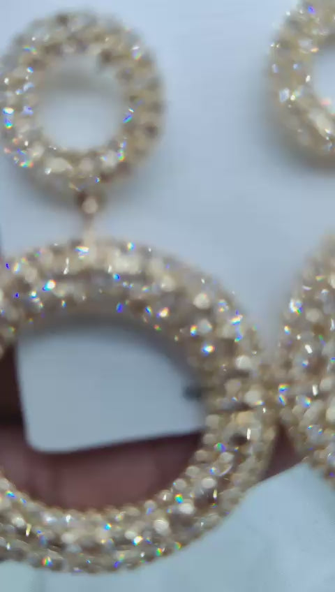 Add a touch of luxury to your look with these dazzling double-hoop earrings. Encrusted with shimmering crystals, the intricate detailing ensures a radiant sparkle from every angle. Perfect for weddings, parties, or any occasion where you want to stand out. Lightweight and nickel-free for comfortable all-day wear. Elevate your jewelry collection with these show-stopping earrings!