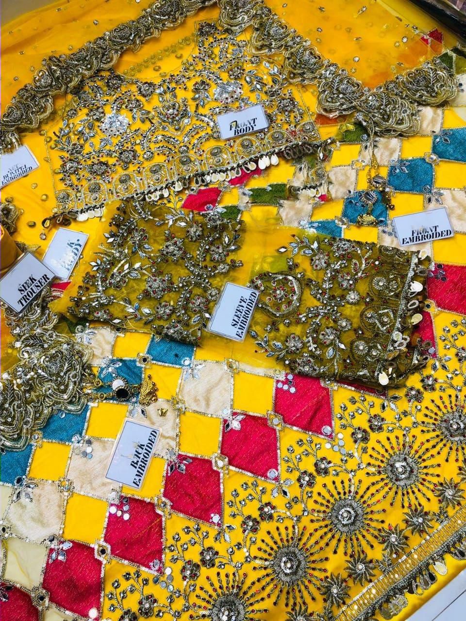 BRAND:KASHEE bridal net maxi embroidered mirror work luxury unstitched 3pc✓