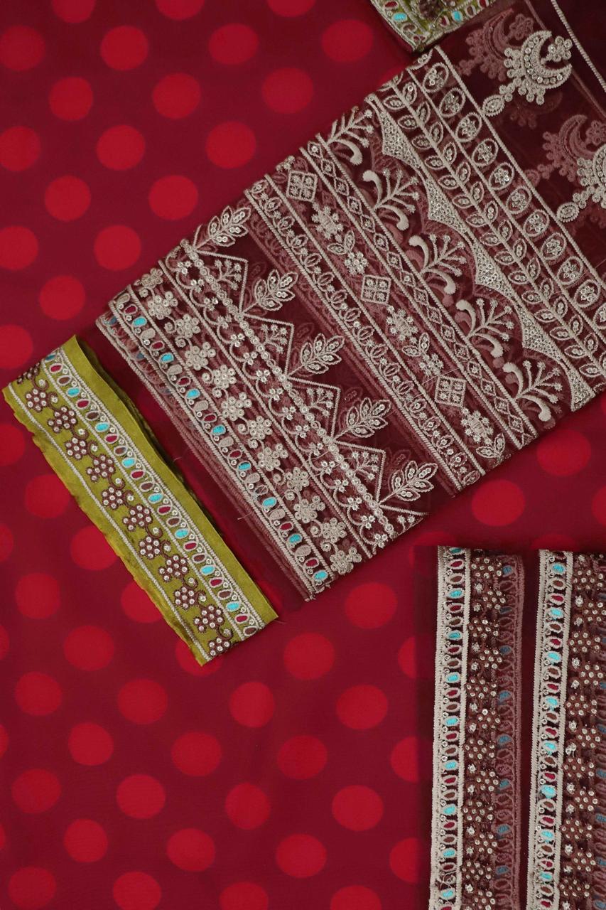 Dupatta: Embroidered Sequins Organza + Embroidered Border + 4 Side Ready-to-Wear Digital Embroidered Finish