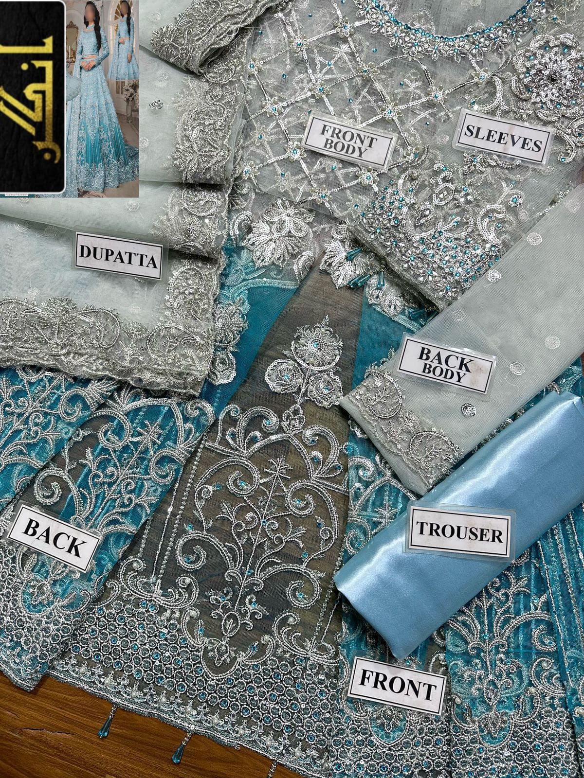 * front body: embroidered pearls sequence & hand work