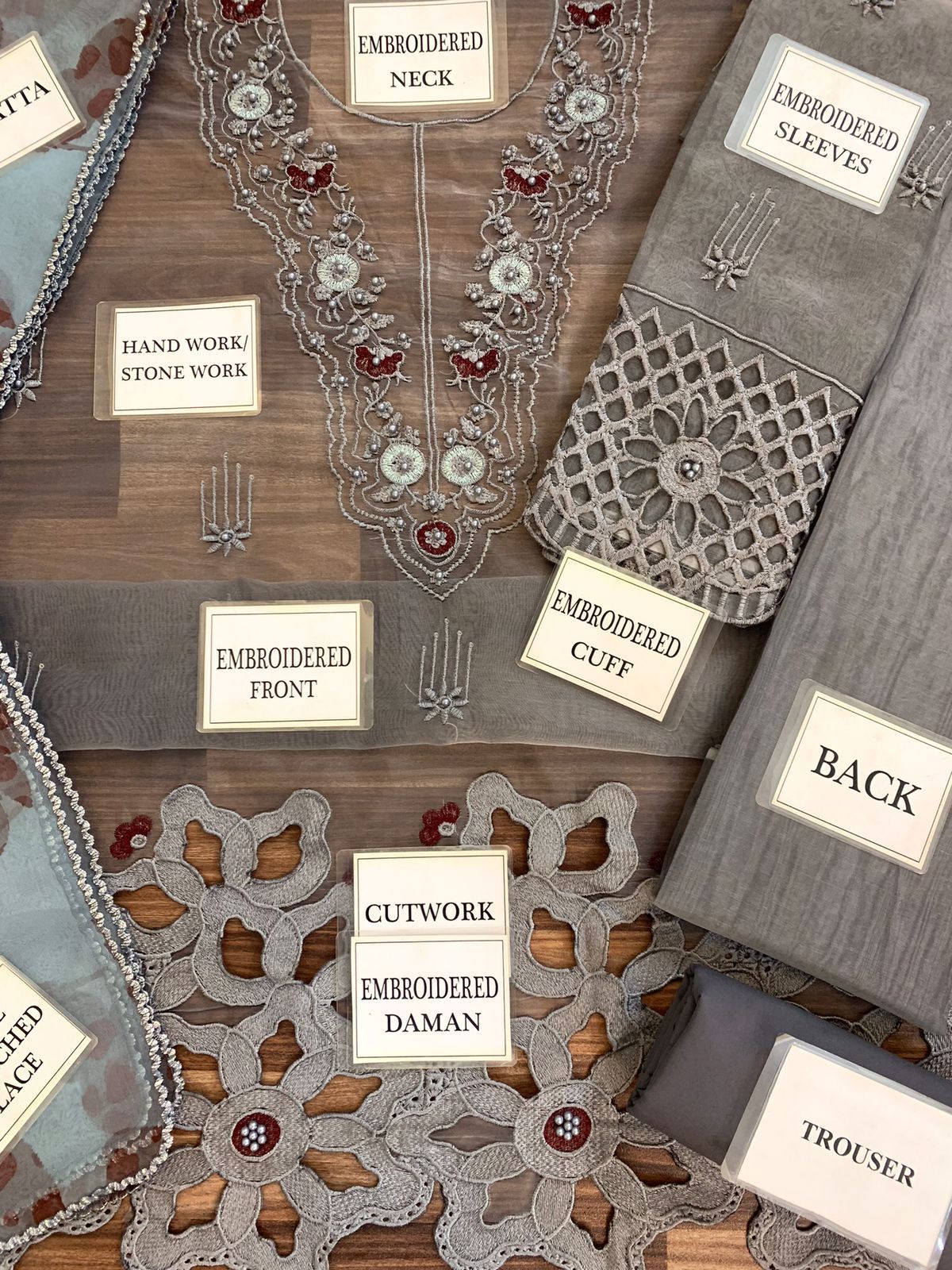 BRAND:MUSHQ organza embroidered unstitced 3pc✓