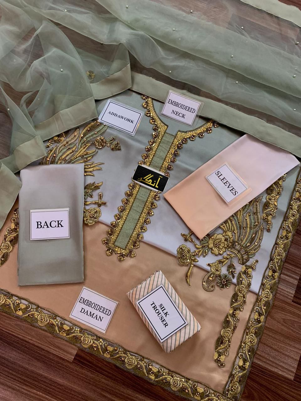 BRAND:PECOCK shamooz silk embroidered hand embellished luxury unstitched 3pc✓
