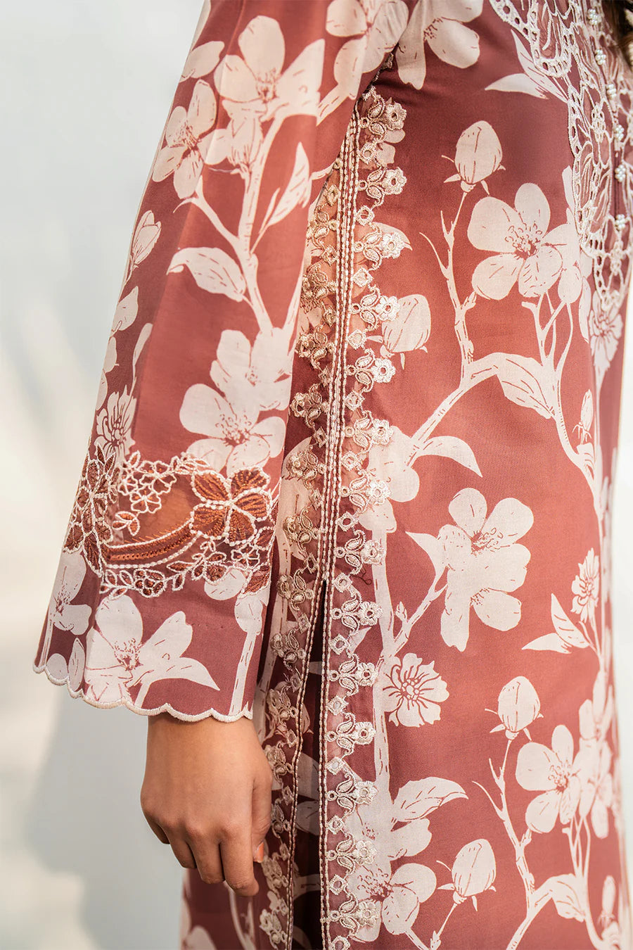 Neckline: Borer Embroidered Organza